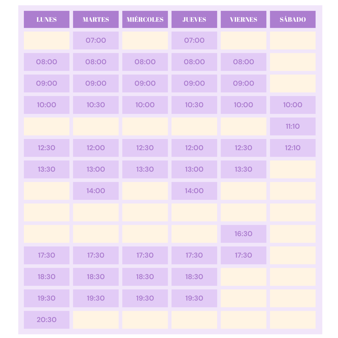 Nuestros horarios